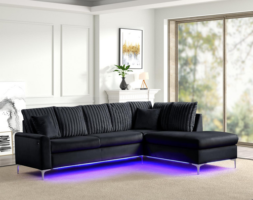 View full detailsFeatures: Stationary Sectional LED Light Removeable Seat Cushion Chrome Metal Legs Throw Pillows Included Weight: 193Color: BlackMaterial: Fabri...