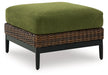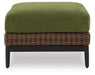 This outdoor ottoman recalls the aesthetics of nature to bring an inviting, high-style feel to your patio or lanai. Its Nuvella+™ performance fabric is made with enhanced UV resistance, so the chic green hue stays brighter for longer. Worried about the weather? Don't sweat it—the durable resin wicker withstands the elements from season to season.