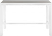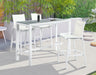 Encourage friends and family to stay ‘till closing time’ when you equip you outdoor entertaining area with this Nizuc outdoor patio aluminum bar table. A perfect complement to the bar chairs in the same collection, this eye-grabbing table features a slatted top, so moisture dissipates quickly following a rain shower or on dewy mornings. light grey polywood on top contrasts nicely with the white frame, which is made from aluminum for lasting beauty and performance.