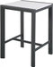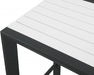 Encourage friends and family to stay ‘till closing time’ when you equip you outdoor entertaining area with this Nizuc outdoor patio aluminum bar table. A perfect complement to the bar chairs in the same collection, this eye-grabbing table features a slatted top, so moisture dissipates quickly following a rain shower or on dewy mornings. white polywood on top contrasts nicely with the dark grey frame, which is made from aluminum for lasting beauty and performance.