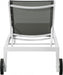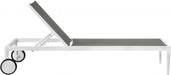 Pay homage to the sun worshipper within when you bring home this Nizuc outdoor patio adjustable sun chaise lounge chair. The white aluminum frame is the star of the show, giving it the staying power it needs to withstand use and abuse by sun revelers for years to come. The waterproof mesh fabric forming the body of the chair is perfect for keeping cool while you sun yourself, and because it’s mesh, it doesn’t hold on to moisture, which helps the chaise dry more readily after a summer rain. Wheels on the chair make it perfectly portable.