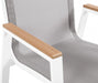 Expand your outdoor entertaining prowess with his Nizuc outdoor patio dining chair. This handsome chair features resilient grey mesh fabric that’s waterproof, making it ideal for outdoor use, even in inclement weather. The aluminum frame is durable and tough, so you can count on this outdoor seat to withstand the rigors or use without skipping a beat. Polywood trim on the arms contrasts quite nicely with the chair, lending it a modern feel. Pair this Nizuc chair with the table in the same collection for a cohesive outdoor entertaining group.