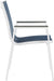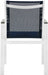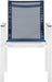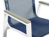 Expand your outdoor entertaining prowess with his Nizuc outdoor patio dining chair. This handsome chair features resilient navy mesh fabric that’s waterproof, making it ideal for outdoor use, even in inclement weather. The aluminum frame is durable and tough, so you can count on this outdoor seat to withstand the rigors or use without skipping a beat. Polywood trim on the arms contrasts quite nicely with the chair, lending it a modern feel. Pair this Nizuc chair with the table in the same collection for a cohesive outdoor entertaining group.