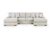Includes 3 pieces: left-arm facing corner chaise, armless loveseat and right-arm facing corner chaise"Left-arm" and "right-arm" describe the position of the arm when you face the pieceCorner-blocked frameReversible seat and back cushionsHigh-resiliency foam cushions wrapped in feather-fiber blend jacketNext-Gen Nuvella accent pillows included; pillows with soft polyfillPolyester upholsteryNext-Gen Nuvella is a performance fabric that is soft, easy to clean, stain-resistant and durableEasy-to-remove zippered covers for machine washingClean fabric with mild soap and water, let air dry; for stubborn stains, use a solution of 4 oz. bleach to 28 oz. waterNon-skid, low-profile accent legs with faux wood finishPlatform foundation system resists sagging 3x better than spring system after 20,000 testing cycles by providing more even supportSmooth platform foundation maintains tight, wrinkle-free look without dips or sags that can occur over time with sinuous spring foundationsEstimated Assembly Time: 10 Minutes