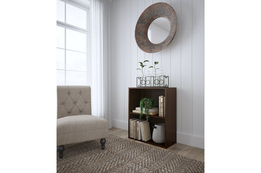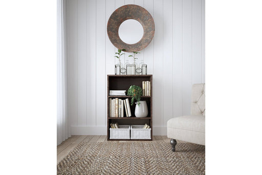 View full detailsCraft a decidedly modern home office with this bookcase. Its rich dark brown wood grain pattern has an air of refinement, while the four open shelv...