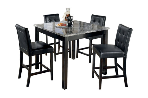 The square shape of this counter height table offers comfortable dining without taking up too much space. Faux marble tabletop has a polished look ...