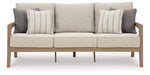 This sofa is a beautiful addition to any outdoor living space. Effortless in its simplicity, this piece echoes your easygoing sensibilities. Combining durable, cutting-edge engineered materials, its Weatherwood construction enhances the contemporary design. Rest assured, the thick cushions and accent pillows are wrapped in high-performance fabric that’s fade-resistant, stain-resistant and a breeze to clean. Pair with the matching loveseat and swivel lounge chair for a spectacular seating arrangement.