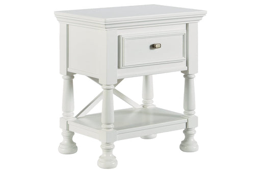 Akerson Chalk Nightstand | B4610 SKU Description Dimensions B4610-2 AKERSON NIGHT STAND CHALK 23.6" X 16.4" X 24.8"H & CENTRE GLIDE