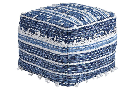 View full detailsThis darling pouf is queen of the blue jeans. Woven from strips of denim, the square shape will be a favorite go-to seat or ottoman. It’s also stur...