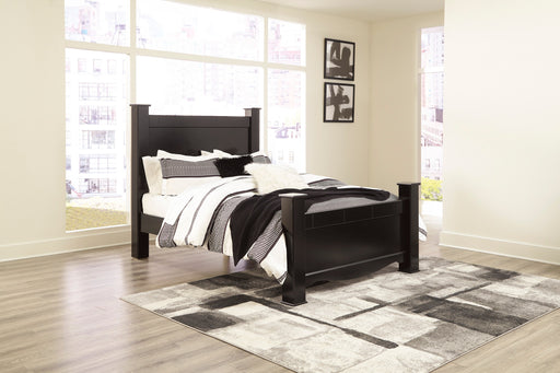 Mirlotown Black King Poster Bed | B2711 General Dimensions: Metric 340mm W x 140mm D x 1552mm H Assembled king bed : 2044.7mm W x 2349.5mm D x 15...