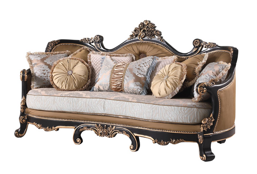 View full detailsSofa 79" W x 34" D x 34" H Loveseat 61" W x 34" D x 34" H Chair 46" W x 34" D x 34" H Features: Beige & Black PU Leather Chrome L...