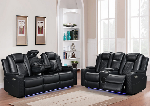 Features: Power Reclining MODERN design DROP DOWN TABLE with cupholders on Sofa CENTER CONSOLE with cupholders on Loveseat Bluetooth Speaker C...