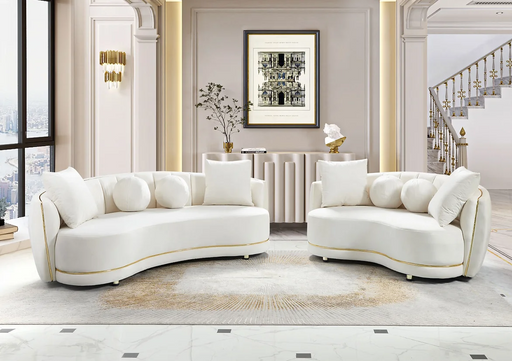 Measurements: Sofa 90" W X 40" D X 30" H Loveseat 70" W X 40" D X 30" H Features: Velvet Curved-shaped construction in hardwood frame....