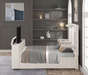This unique bed is the epitome of modern luxury and convenience, designed to cater to the needs of tech-savvy individuals who appreciate comfort and style. Each side includes fold-down armrests, offering adaptable comfort for reading or relaxing in bed. The central armrest serves as more than just a plush support; it houses a built-in wireless charging station, ensuring your devices are powered up without the clutter of cords. Additionally, LED reading lights are thoughtfully integrated for late-night readers, providing optimal illumination without disturbing your partner.