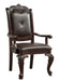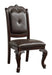 The Kiera Collection by Crown Mark carries an elegant traditional style that will bring a timeless atmosphere to your home. Exquisite carved details and ornate trims are bathed in a rich brown tone over the select hardwoods and veneers of each piece. The double pedestal table featuring gorgeous molding and ornate trim comes with two 18 inch leaves to extend it from 72 inches to 108 inches for larger parties. Side and armchairs are padded and upholstered in a dark brown color faux leather to provide you and your guests with luxurious comfort. Button tufted back with diamond stitch motif and nailhead trim add more visual appeal. This grand collection is sure to bring elegance and sophistication to your home!
