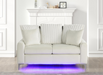 Beige Fabric Loveseat, Channel Tufted back Pillow, Chrome Legs, LED Light