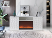 This electric fireplace is the perfect addition to any living space, providing both warmth and style. With its color LED panel and remote control, you can easily change the colors, speed, and brightness of the light to create the perfect ambiance for any occasion. Its functionality goes beyond its heating capabilities, as it comes with blue tooth and speakers. It can also be used as a TV stand. Its sleek and modern design makes it perfect for contemporary décor, while its timeless elegance ensures it can blend seamlessly with any décor style. Perfect for those cold winter nights or for creating a cozy atmosphere while watching TV. Add this functional and stylish white electric fireplace to your home today.