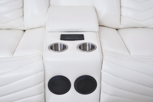 Zenith - 3PC White Power Sectional, Bluetooth Speaker, Two storage Console, Cup Holder, Built-in LED Light, USB ChargerWeightColor: WhiteMaterial: ...
