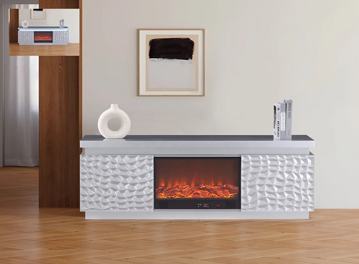 Measurements: 70" W x 16" D x 31" H Features: Made of MDF, Glass, veneer, resin, and metal Screen type - Glass Blue ToothSpeakers Remote...