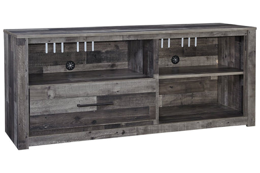 View full detailsEntertain a rugged yet refined sense of style with this TV pier. Rustic finish and plank-style details pay homage to reclaimed barn wood. Ultra cle...