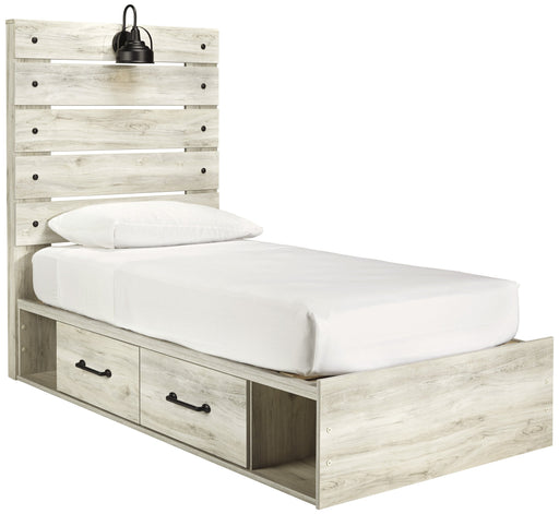 View full detailsCambeck Whitewash Twin Side Storage Bed | B192Wispy white finish over replicated Oak grain with authentic touch. Large scaled dark colored handles....