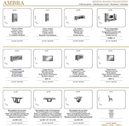View full details1- Large Mirror Art. 31 (Qty 1)Width: 74, Depth: 3, Height: 34, Weight: 130, Volume m³: 0.23, SKU: i37856Descriptions:Luxury Classic Dining room se...