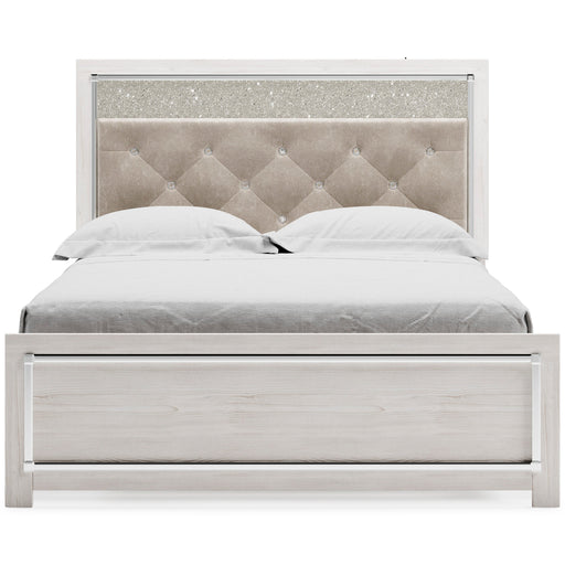 View full detailsAltyra White King Panel Bed | B2640HeadboardGeneral Dimensions:63.39" W x 2.99" D x 52.8" HAssembled queen upholstered bed : 63.5" W x 85.5" D x 53...