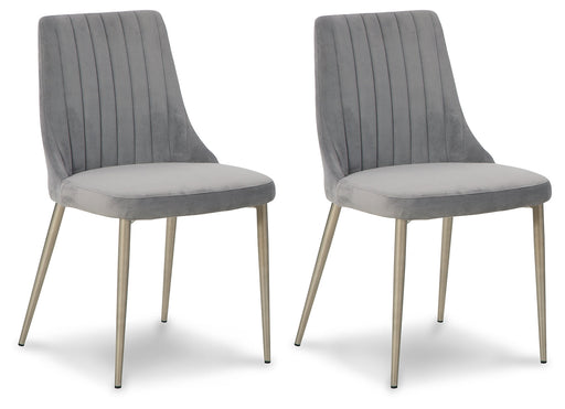View full detailsThis dining chair draws from classic design motifs to craft a fresh, contemporary look. Soft gray velvet upholstery is accented by channel stitchin...