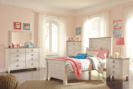 Twin Size Bed: 41" W x 77" D x 54" H Full Size Bed: 56" W x 77" D x 54" H Dresser: 59" W x 16" D x 35" H Mirror: 35" W x 1" D x 41" H Nig...