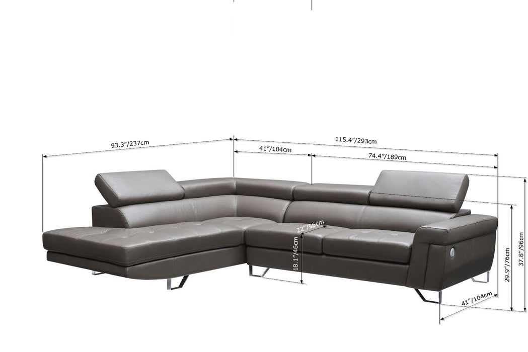 Leather color A135 Dark Grey With a USB power outlet on the armrest side.