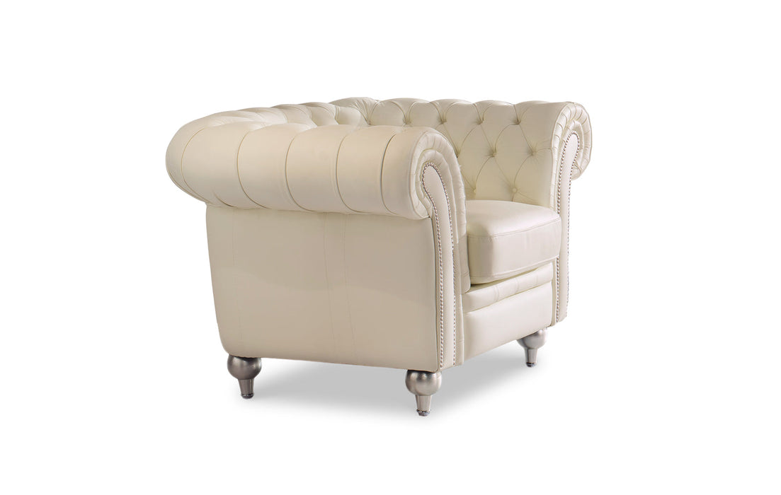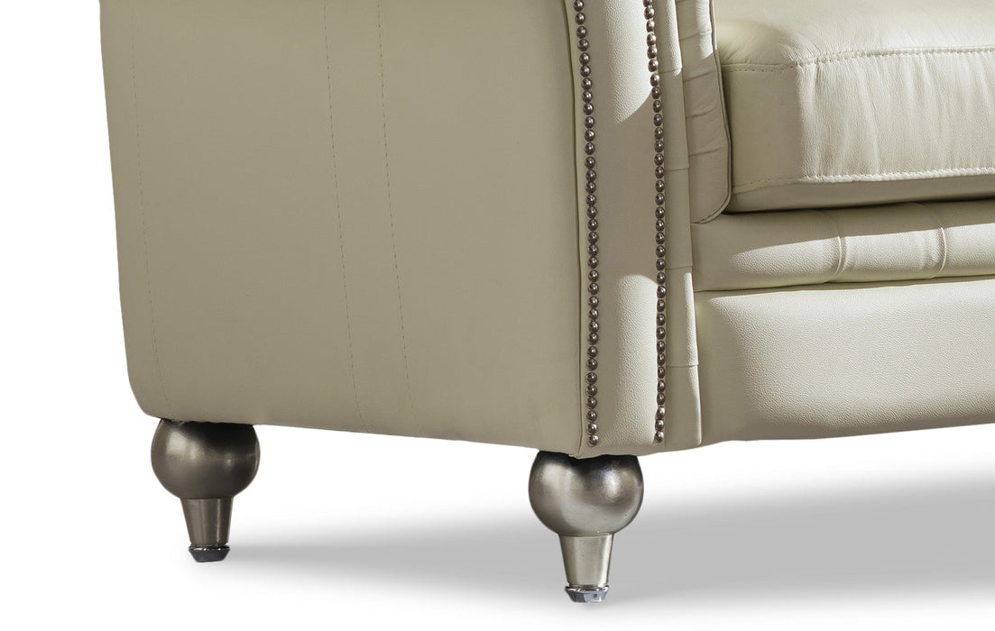 This living room set has an inviting appeal and comfort. Sofa, Loveseat and Chair are wrapped in finest genuine Italian leather with matching PVC on the back. You can always special order it in variety of colors. This Quality Furniture Set will bring luxury look to any room. Upholstery Material : Top-grain Leather/Eco Leather on the Back Stock leather color ( half leather) : # 05 White Seat: Depth 22.5" Height 19.0"