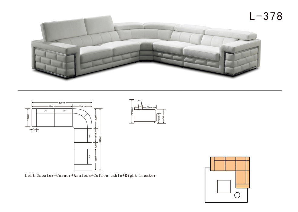 COMING SOON TO STOCK 378 Sectional is designed for good looks and uncompromising comfort. * Adjustable Headrest Leather color #A99 LIGHT GREY
