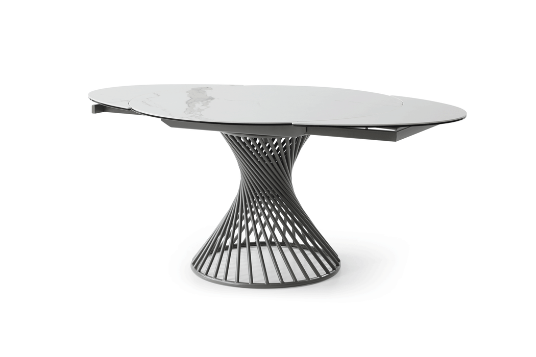 A unique set of furniture for the dining area. Durable wooden and metal construction combined with rich high gloss finish give this set its ultra-modern exterior while the white color of the set adds a touch of the elegance. Marble like Table top- ceramic. top: 8mm glass +5 mm ceramic ( YBB189802) frame & legs: powder coated metal in color U03 Seat depth 18''