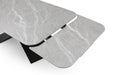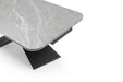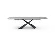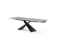 Sophisticated dining table with an extended ceramic top Table Top & ext : 12mm ceramic (GREY) round corner Base: Sanded black powder coated metal Two 16'' Extensions