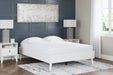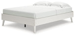 Dare to take minimalism to the max. This full platform bed has an air of sleek simplicity thanks to its white painted finish with subtle replicated wood grain. Magnificently mod splay legs are a compelling complement to the streamlined design. There's no doubt about it: This contemporary piece is sure to become a classic.
