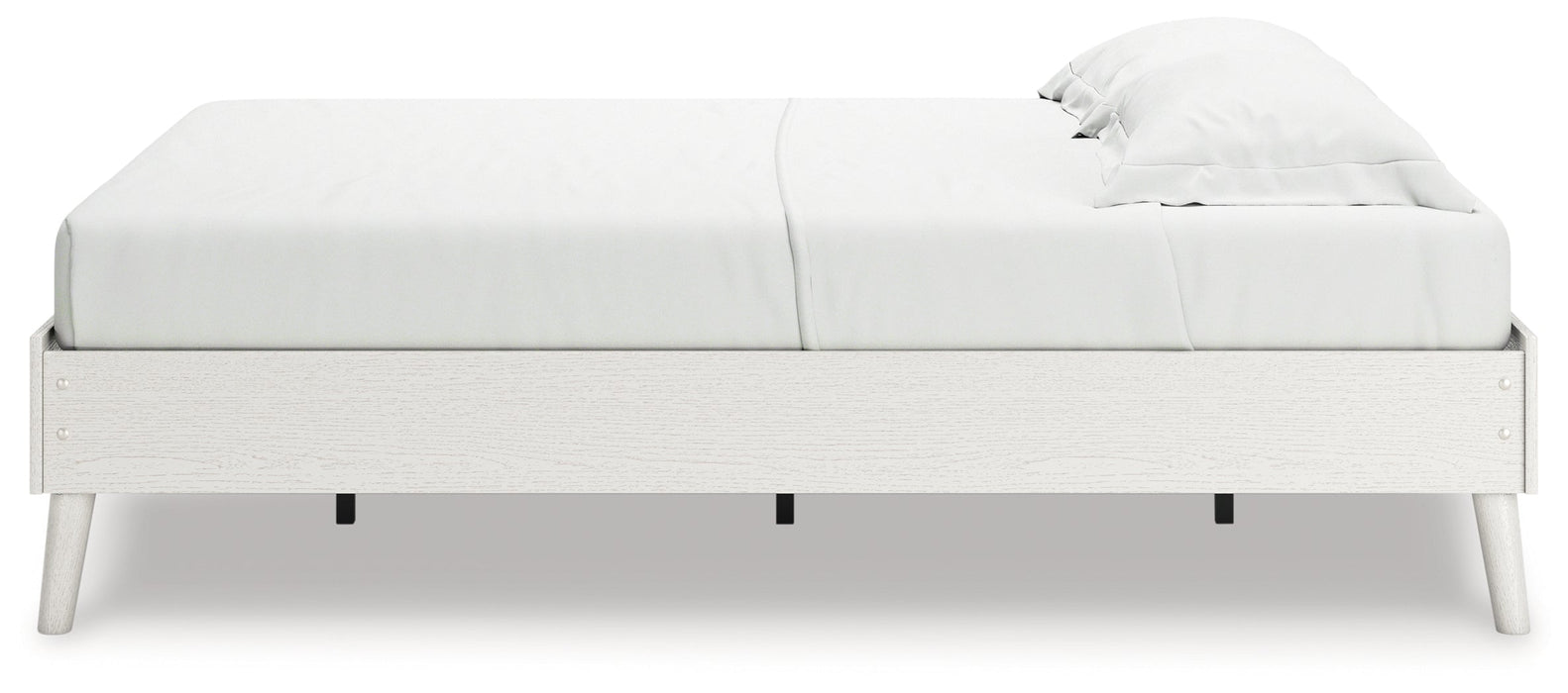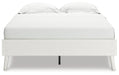 Full platform bed (does not include headboard) Made with engineered wood (MDF/particleboard) and decorative laminate White painted finish with a subtle replicated wood grain Splay legs Bed does not require a foundation/box spring Mattress available, sold separately Assembly required