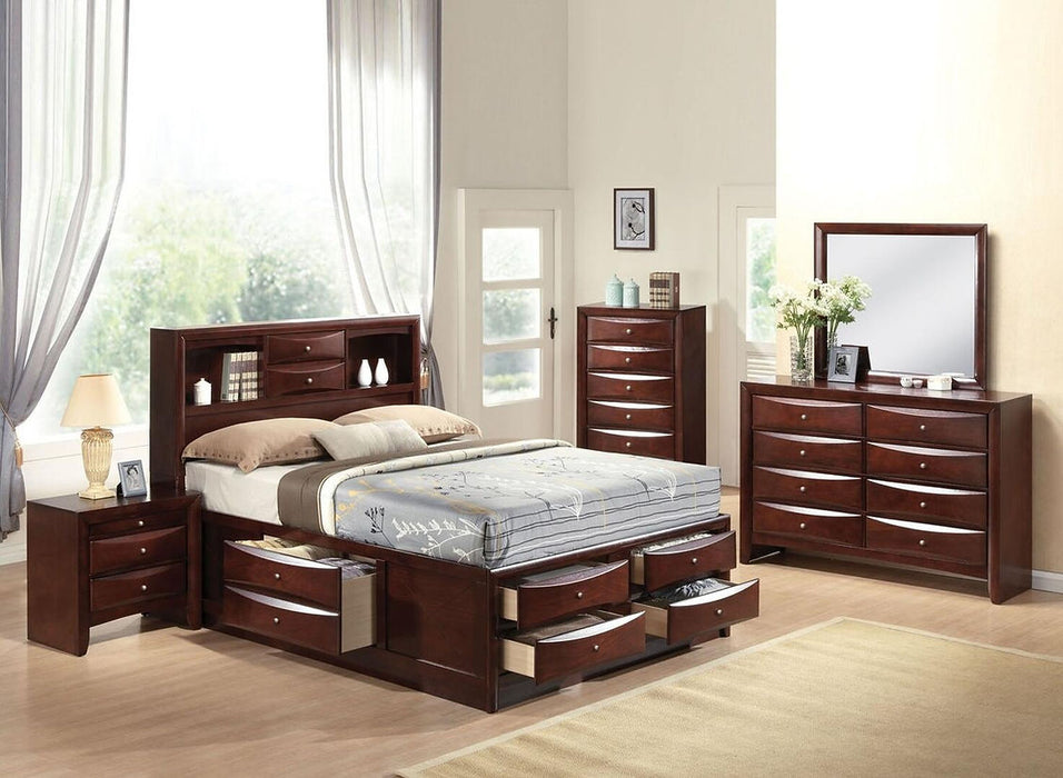- 5 Piece Set Includes: Bed, Dresser, Mirror, Nightstand, Chest