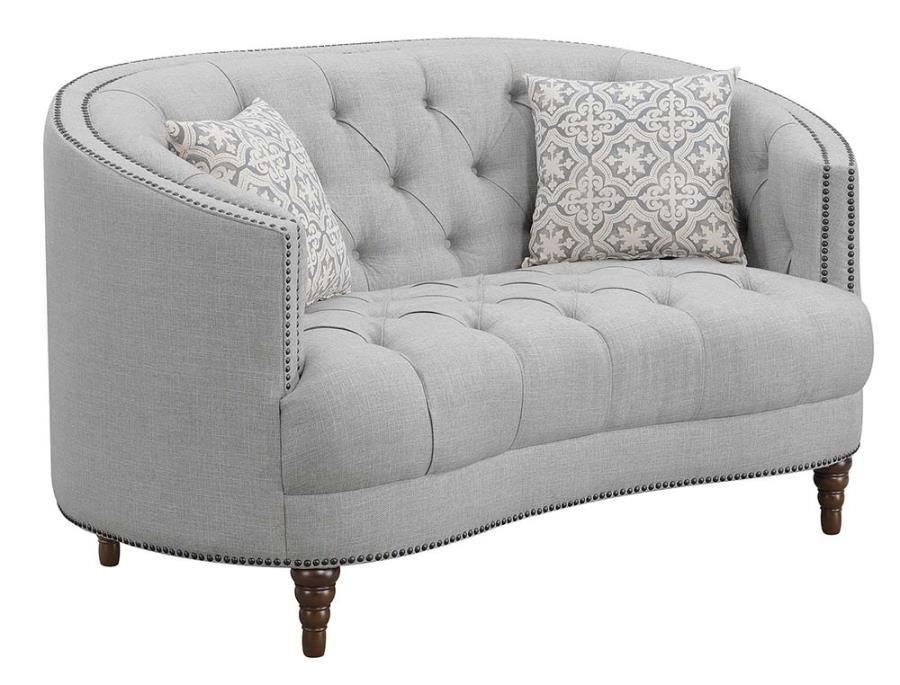 Avonlea Sloped Arm Upholstered Loveseat Trim Grey