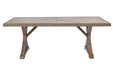 Sporting an easy-on-the-eyes look inspired by driftwood, this dining table elevates the art of indoor-outdoor living. Beautiful and durable enough for indoor and outdoor use, this high-style/low-maintenance table charms with X-leg farmhouse styling and wows with a thick porcelain table top that’s a natural complement.