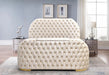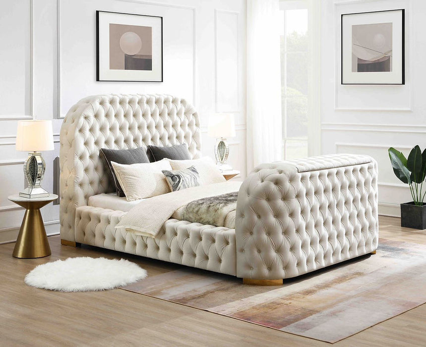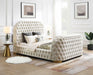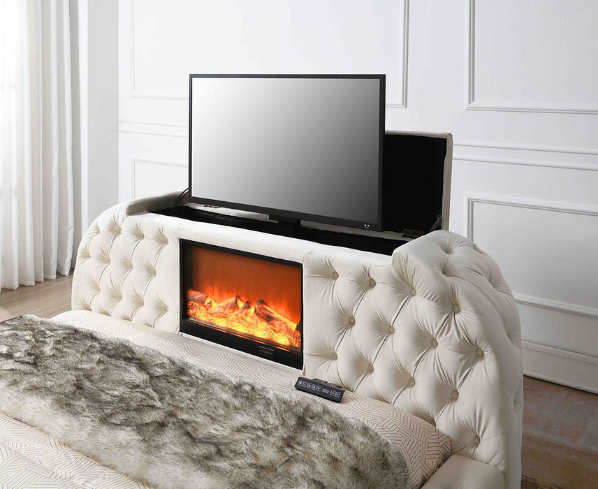Blaze Cream Velvet TV Fireplace Queen Platform Bed