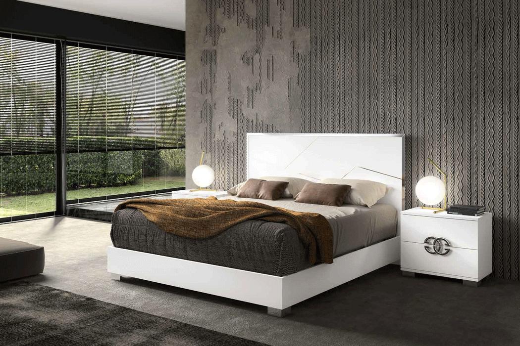 MADE IN ITALY Stylish White High Gloss Finish Bedroom from Italy. Nightstand /Dresser and Chest - soft close drawers