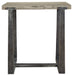 Made of oak veneer and engineered wood Tabletop with warm gray finish Distressed sand-casted aluminum base with antiqued pewter-tone finish Assembly required
