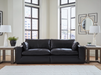 Catering to your contemporary lifestyle, this sectional loveseat is a handsome marriage of masculine and feminine sensibilities. Feather-fiber cushions and bolster pillows soften the look of its chunky, linear silhouette. A warmly hued combination of leather and faux leather upholstery levels up the affordable luxury. And you'll never run out of ways to stage this seating—each piece is fully finished on all sides and capable of standing solo. Urban sophistication has never been more versatile.