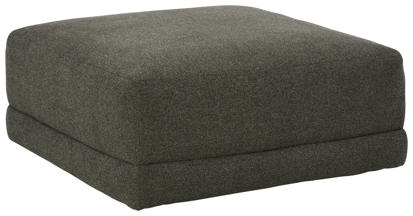 Architecturally inclined with its gently curving profile, this oversized accent ottoman is stunning from all angles. Acting as the focal point in a neutral space, the granite-hued upholstery also creates a blank canvas for adding pops of color.
