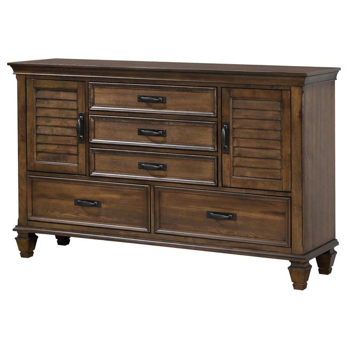 Franco 5-drawer Dresser with 2 Louvered Doors Burnished Oak