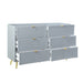 The Gaines Collection is a glamorous and sophisticated grouping that adds a chic style to any room. The gray gloss finish and gold metal accents help to accentuate the clean lines of the pieces and add a pop of glamour. The diagonal line design adds visual interest and texture, making each piece stylish. With a variety of storage options to meet your needs.