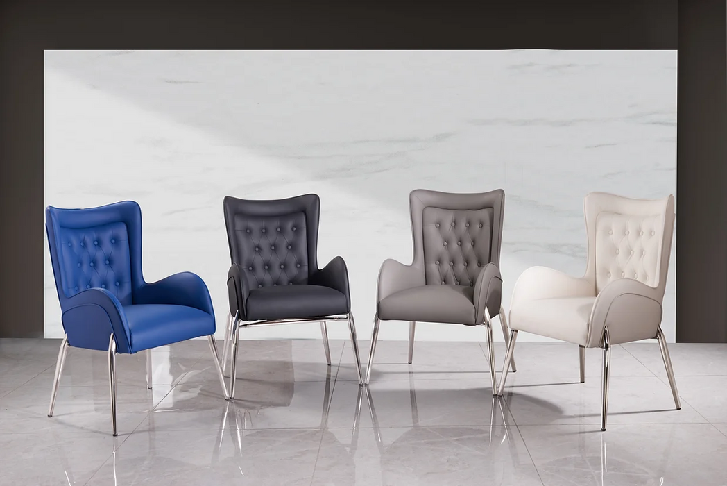 Simple and tasteful, this dining chair delivers glamour accents to your space. Featuring a sleek-lined silhouette, and button-tufted accents on the back cushion, this chair makes the perfect pick for any contemporary interior design. Upholstered in PU leather and filled with elastic foam, the seat offers you incredible comfort. The contrasting upholstery and brushed stainless legs give this chair the uniquely stylish look you want. Crafted with stainless steel, it ensures long-lasting usage.