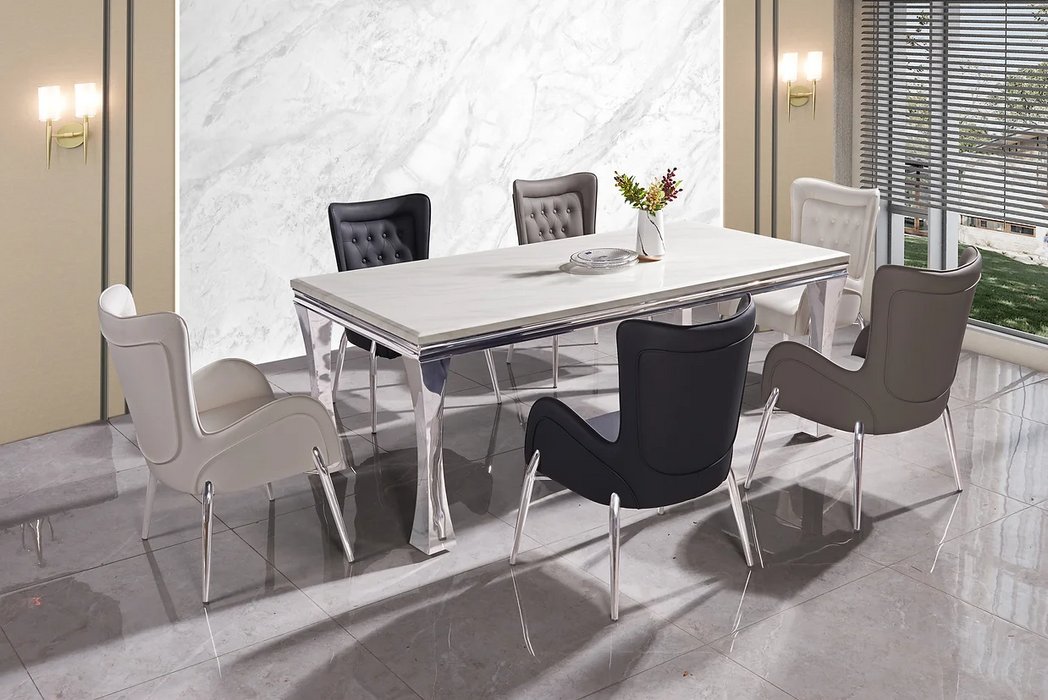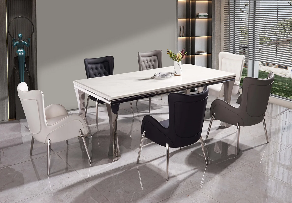 Gandhi Silver/White Dining Room Set With Mulan Chairs