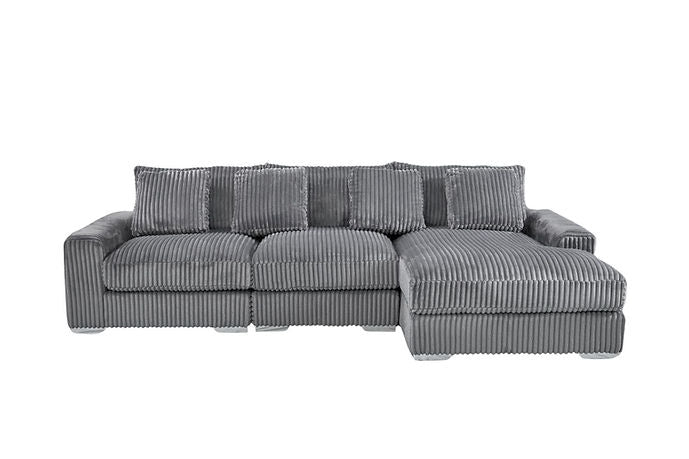 Plush and posh. Showcase your eye for on-trend texture with the statement-making cord upholstery of this sectional with chaise. Its stunningly soft fabric complementing contemporary color palettes. Sink into the cushions and plan to stay a while—this cozy living room centerpiece highlights your high-end approach to comfort and style.