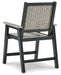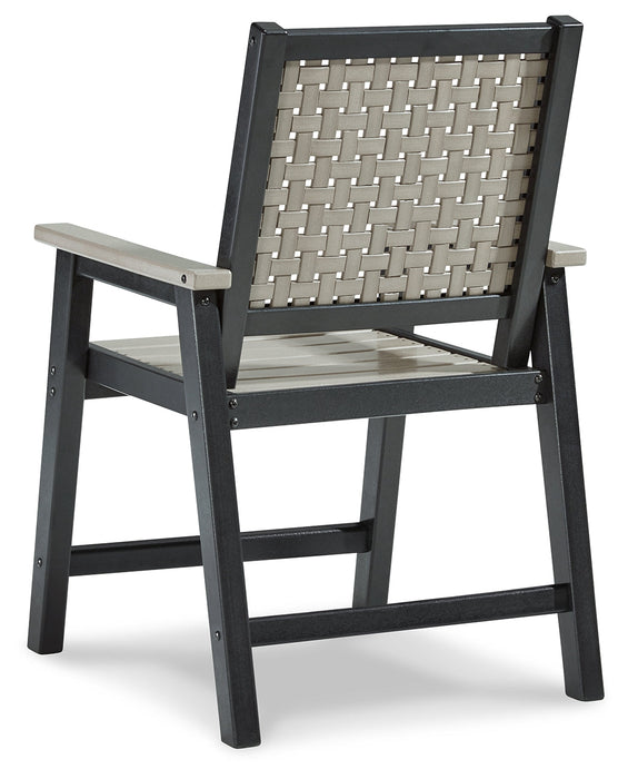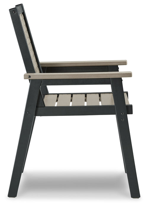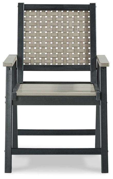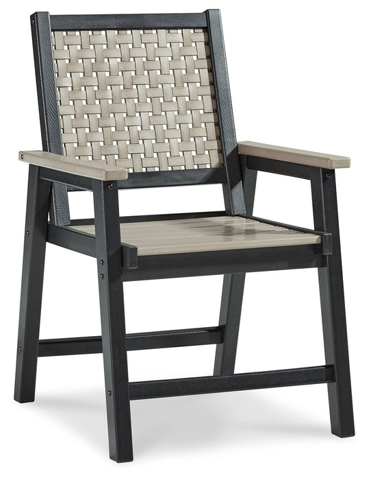 On-trend stylings take to the outdoors with this arm chair. Its two-tone look in driftwood and black has a laid-back luxe appeal. High design meets durability with this outdoor chair's weather-resistant HDPE construction—a stunning display of form and function.